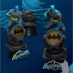 The D-Stage Batman on the other hand is every bit the personification of heroism and strength. Standing on top of the Bat-Signal searchlight, Batman is looking determined to solve his latest crime, and is dressed in the classic blue and grey colors with the yellow and black bat logo made popular in the original comics.