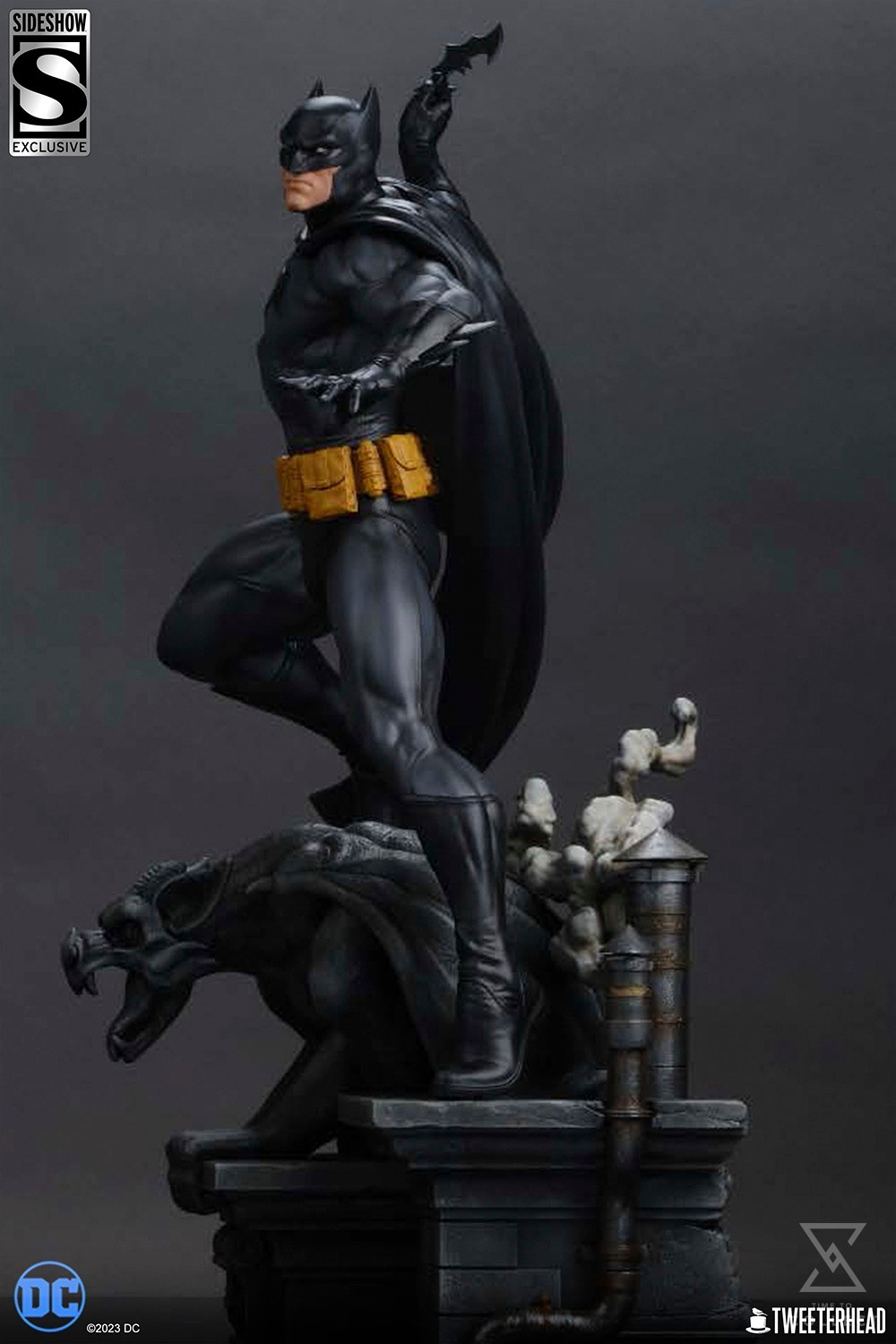 This fully sculpted polyresin statue showcases Batman in a “Neo Classic” take on his costume, atop a gargoyle and Gotham-inspired rooftop – ready to fight! Reflected in a dynamic action pose and batarang ready, this Batman is sculpted and painted with the expert artistry Tweeterhead is known for.