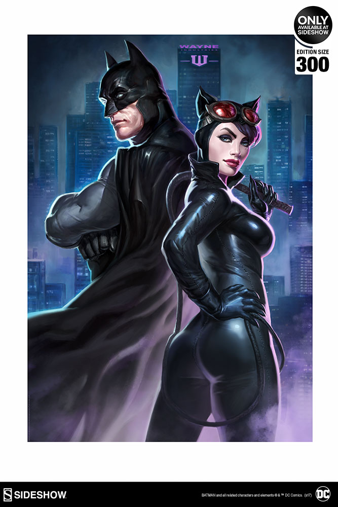 SIDESHOW IS PROUD TO PRESENT BATMAN & CATWOMAN BY ALEX PASCENKO JOINING OUR OFFICIALLY LICENSED PREMIUM ART PRINT COLLECTION. INTRIGUE, EXCITEMENT, ANIMAL ATTRACTION – THE ONLY THING MISSING FROM BATMAN AND CATWOMAN’S RELATIONSHIP IS TRUST. ALTHOUGH BRUCE AND SELENA LIKE TO KEEP EACH OTHER CLOSE, STANDING SIDE-BY-SIDE DOESN’T ALWAYS MEAN THEY’RE ON THE SAME ONE.