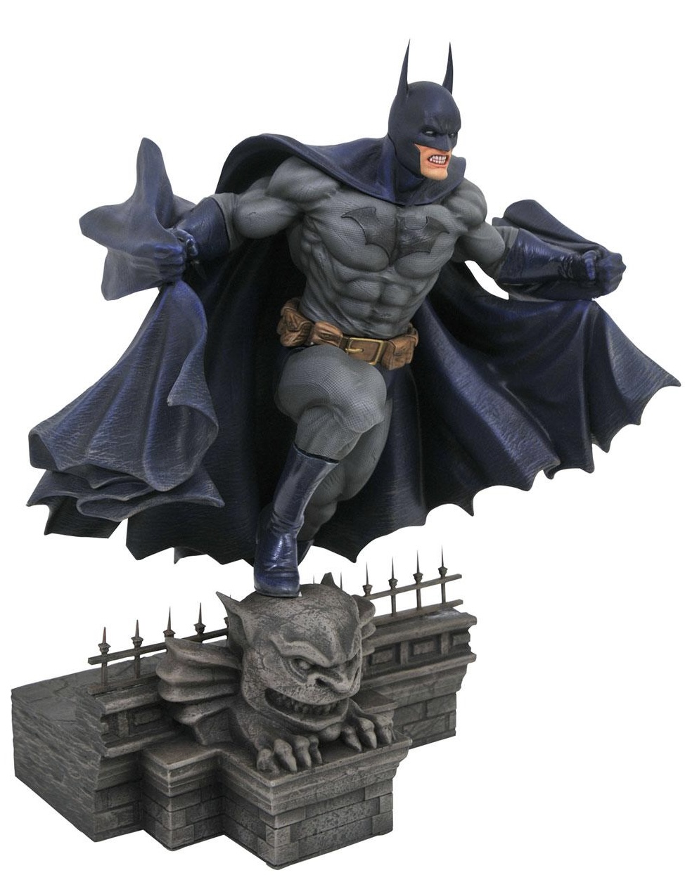 A Diamond Select Toys release! The guardian of Gotham City has arrived! This highly anticipated entry in the DC Gallery line depicts a modern comic-style Batman atop a Gotham City rooftop, his cape flaring out behind him. Measuring approximately 10 inches tall, this PVC diorama features detailed sculpting by Alterton based on a design by Caesar. Packaged in a full-colour window box.