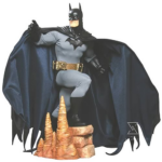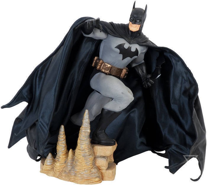 Batman riseth… and malevolence must pay heed! This mind-blowing Batman statue is arguably the most classic and impressive representation of The Dark Knight to date. Standing an incredible 18 1/2-inches tall, this astonishing museum-quality, mixed-media figure is scrupulously fashioned of resin, metal, and an expertly crafted fabric costume with poseable cape. Batman is presented on a nicely sculpted base, ascending the steps of the Batcave. This exquisite, limited edition piece includes a certificate of authenticity and is packaged in a gold-foil stamped, black gift box. It deserves a position of honor in your museum!
