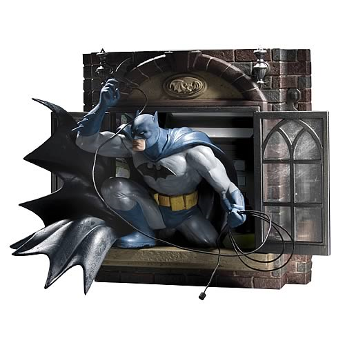 Hang Batman on your wall! The first in a series of dimensional display pieces, Gotham City Stories kicks off with Batman. This beautifully detailed resin rendition of the Caped Crusader in action is designed to hang on the wall or be displayed on a desk or shelf. The limited edition, hand-painted, cold-cast porcelain piece measures approximately 5 3/4-inches tall x 5 3/4-inches wide x 2 1/4-inches long and is packaged in a 4-color box with a 4-color certificate of authenticity. What will they think of next?! Limited edition of 2,500 pieces.