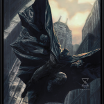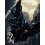 From the streets to the skies, all of Gotham knows the shadow of the bat. The Dark Knight is never far behind when that beacon shines bright above the crime-ridden city. Artist Lee Bermejo captures the duality of hope and terror as Batman leaps from the rooftops, guided by the call of the Bat-Signal. His immense cape cuts through the air like a pair of wings, striking fear into the hearts of evildoers under his watch.
