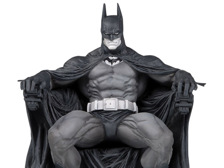 This statue features an imposing and bold Batman as he rests in a chair in a pose that feels almost as if he’s sitting on a throne. Silvestri’s cape, drawn with an organic texture, is captured in every sinister detail and provides an ethereal aura to this already striking piece.