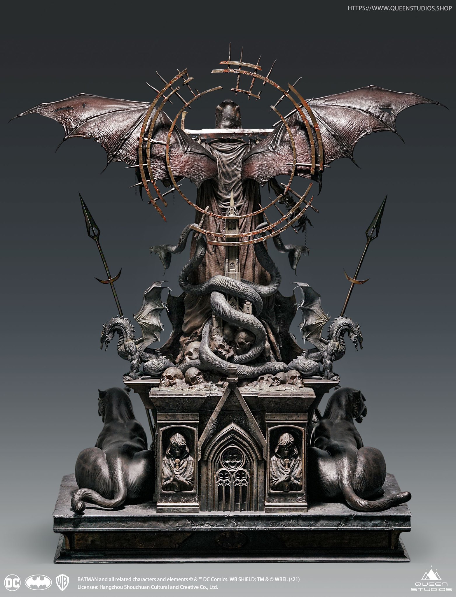 A throne represents power, whether occupied by a righteous leader, or a usurper. In this case, The Bat is sat upon a Throne shrouded by Death himself. This statue is designed after the limited variant cover of Dark Knights METAL #1 by Tim Bradstreet and created with similar intentions to the story it re-enacts. Nothing is what it seems, are we to trust the Justice League, or the Dark Knights. If Batman is to take the Throne, what is the price?