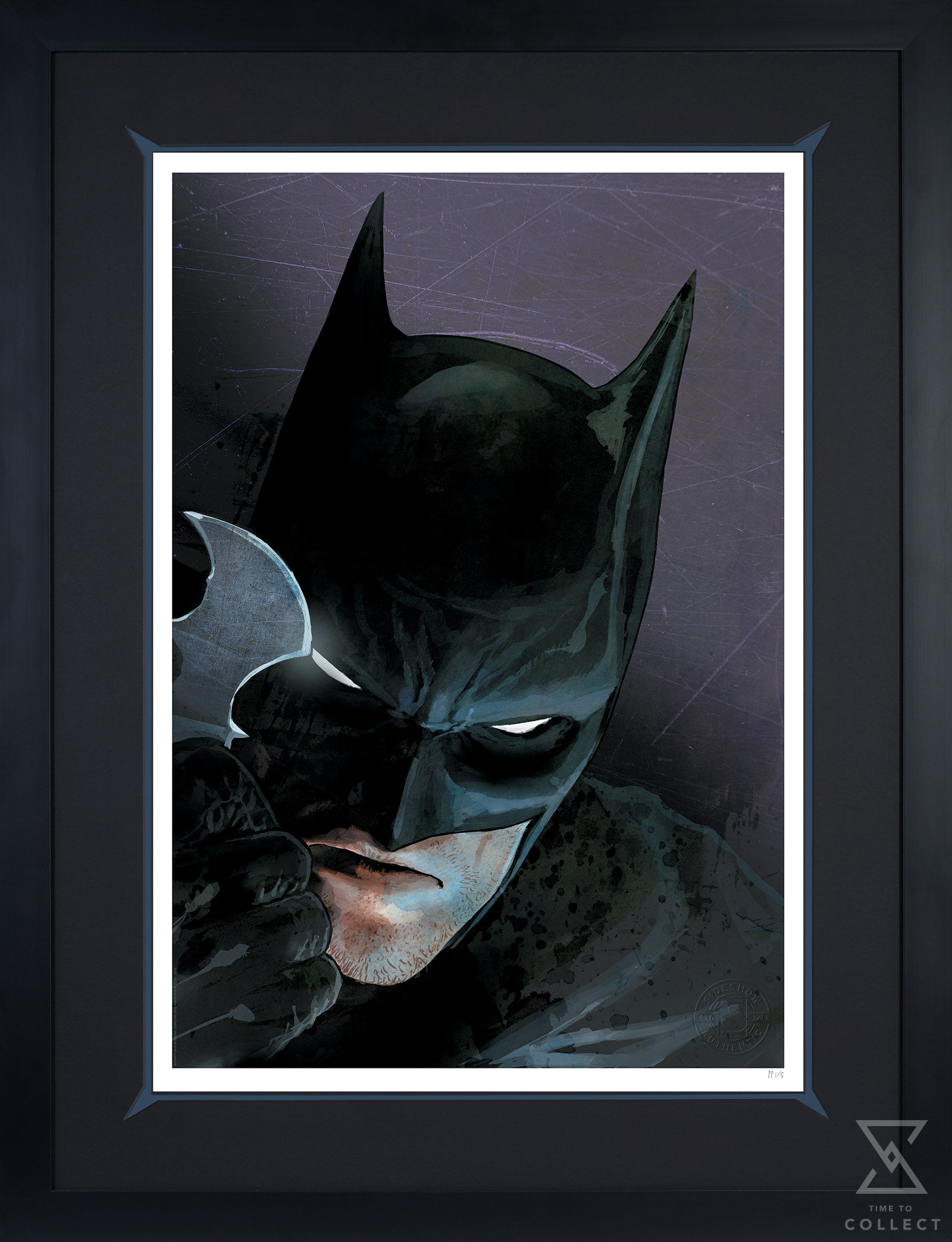 Originally created as the cover for Batman: Rebirth #1 (2016), written by Scott Snyder and Tom King for DC Comics, this Batman art is now available to fans as an unframed giclée print or in a custom framed presentation. Each Batman: Rebirth Fine Art Print features an embossed Seal of Authenticity as part of the limited edition of 150 pieces.