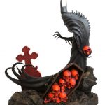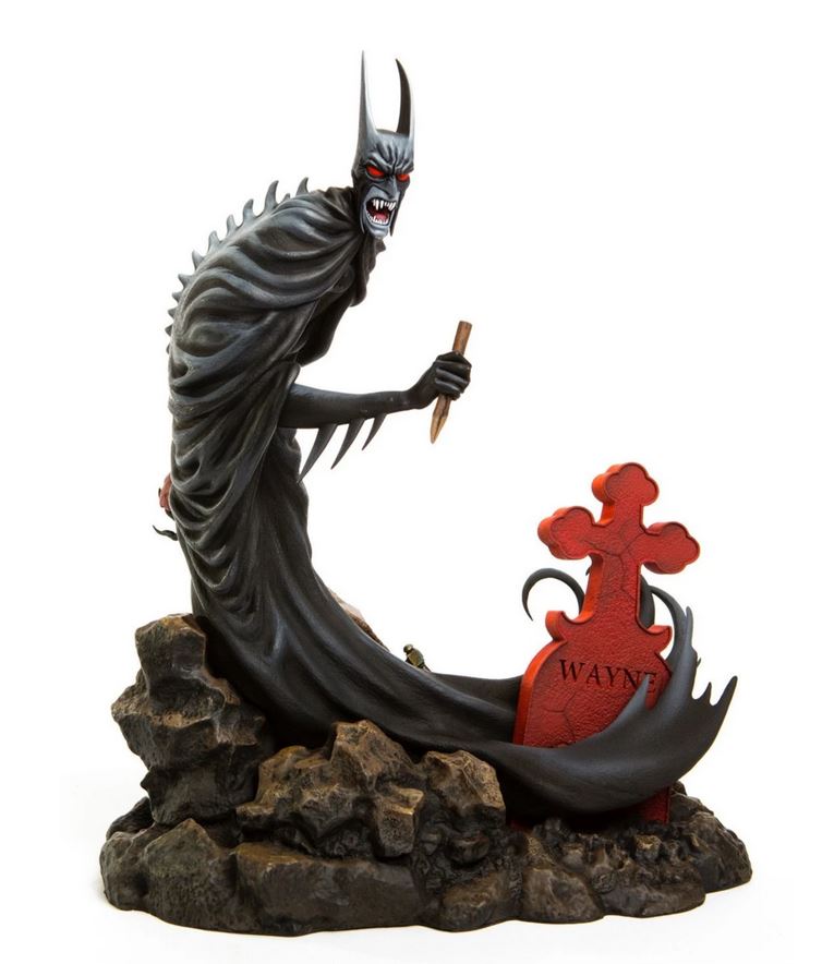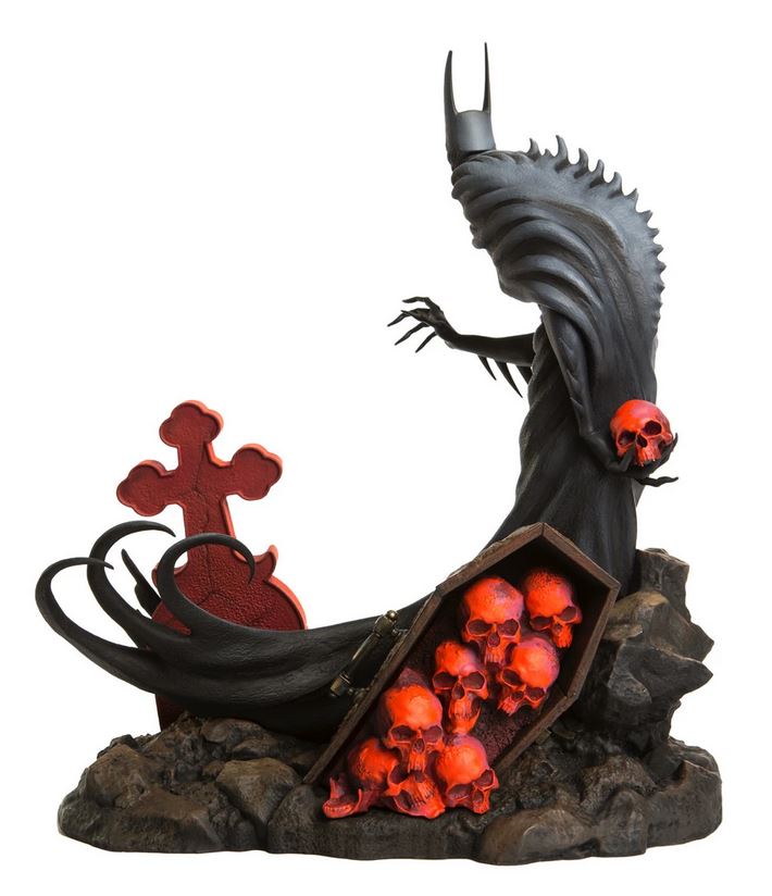 Incorporating elements from the poster, such as a tombstone from Batman’s past and slain vampire skulls, this statue brings the dark beauty of the two dimensional art into the horrific third dimension!