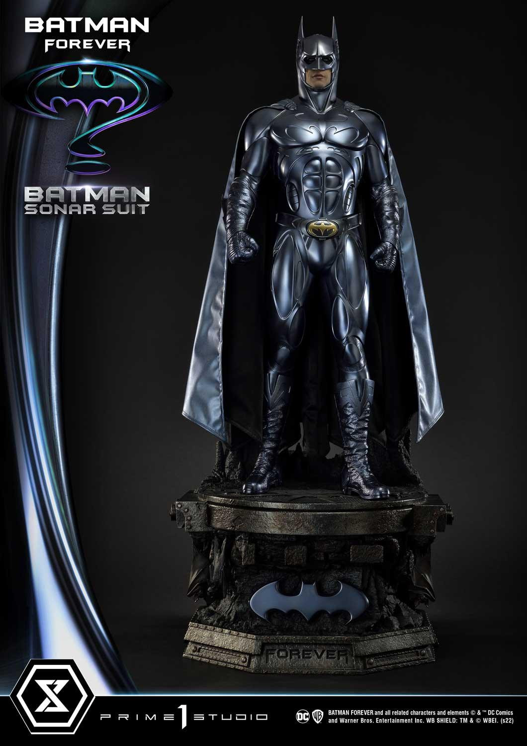 Prime 1 Studio is proud to present a new addition to the Museum Masterline Series: the 1:3 Scale MMBM-04S: BATMAN SONAR SUIT BONUS VERSION from BATMAN FOREVER! In the climactic third act of 1995’s Batman Forever, Batman debuts a new version of his costume, the Sonar Suit! And now, Prime 1 Studio brings you a shiny, sleek, and metallic, 37-inch-tall Batman to celebrate this wildly enjoyable movie! As usual, our skillful team of sculptors and painters have expressed their passion and dedication in their work by crafting a Batman with incredible likeness and impeccable quality! Batman’s second costume from the film is impressively decorated with finely detailed appointments and a spectacular paint job! The unbelievable craftsmanship in his face is absolutely moving: from his lifelike eyes to the subtle pout of his lips to the natural complexion of his skin. Posed in an iconic stance, Batman Sonar Suit is ready to spring into action during the penultimate battle with Riddler and Two-Face!