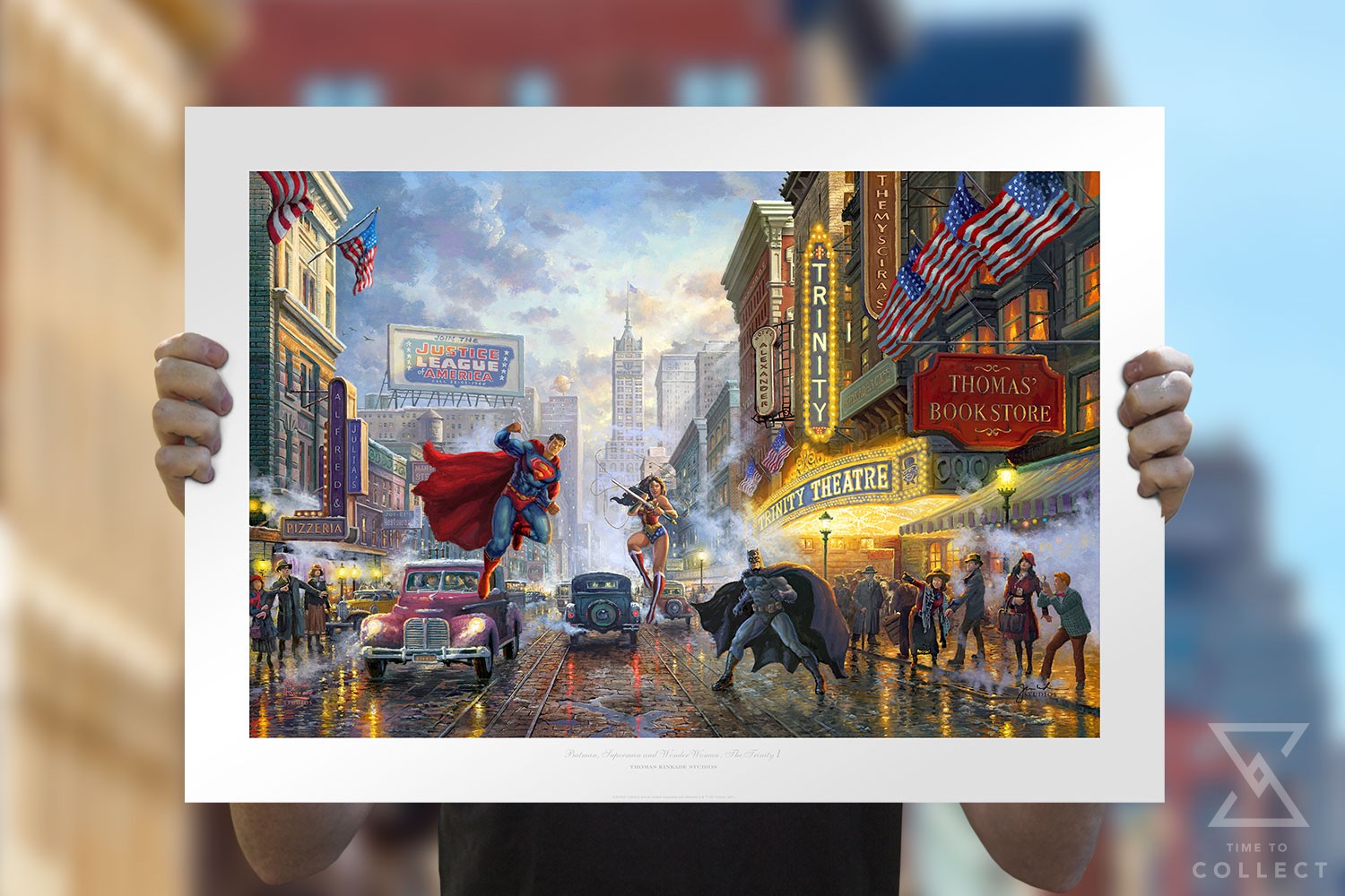 The Batman, Superman, and Wonder Woman: The Trinity I Limited Edition unframed paper print by Thomas Kinkade Studios was made with the greatest attention to detail and color accuracy. Each is printed on premium heavyweight (100 lbs.) archival papers with superior fade-resistant inks. Every paper reproduction is individually numbered and comes with a matching Certificate of Authenticity.