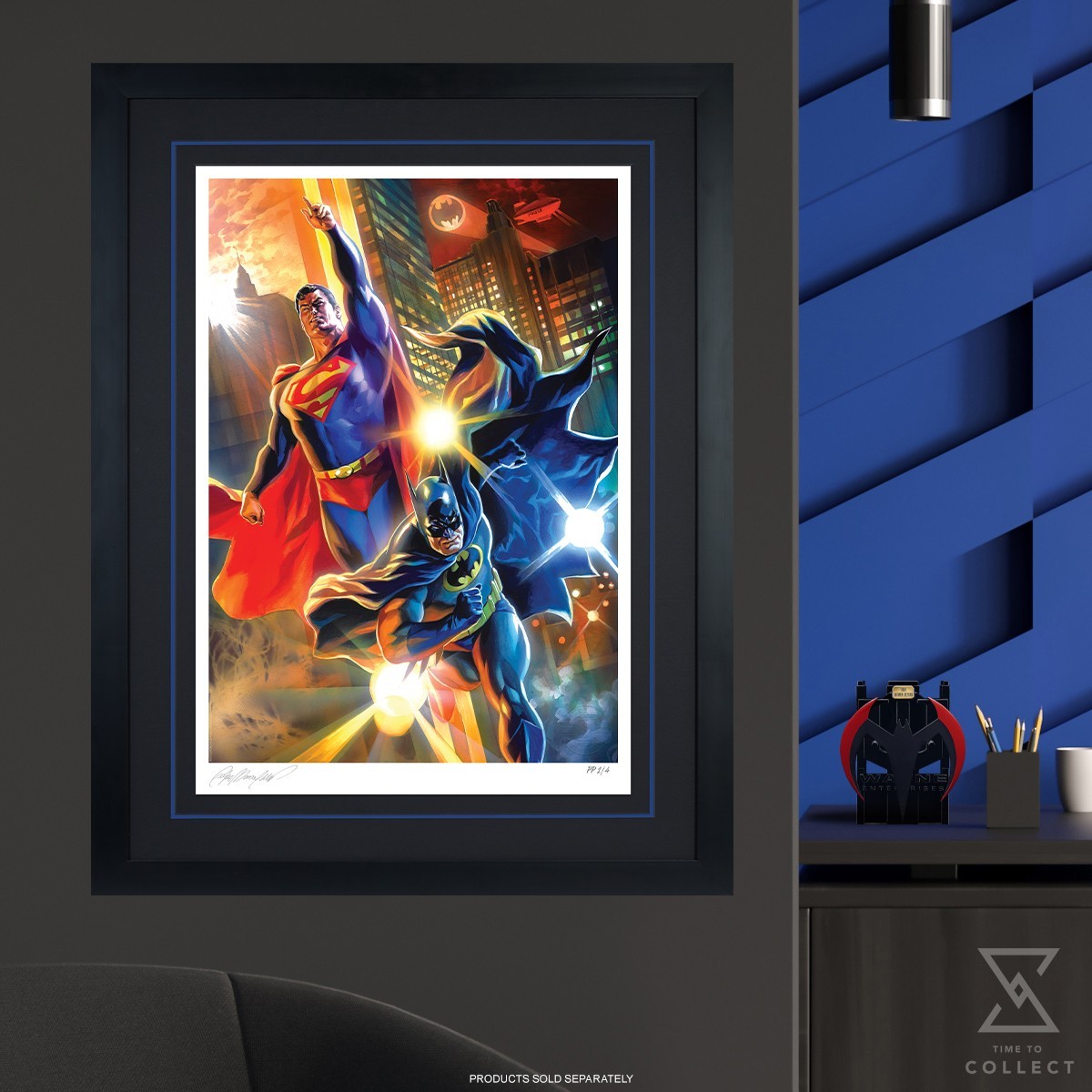 Originally created as a variant cover for Batman/Superman: World’s Finest #28 (2024), written by Mark Waid for DC, this super hero art is now available to fans as an unframed giclée print or in a custom framed presentation. Each Batman & Superman: World’s Finest Fine Art Print features an authorized, automated signature and an embossed Sideshow Seal of Authenticity as part of the limited edition of 250 pieces.