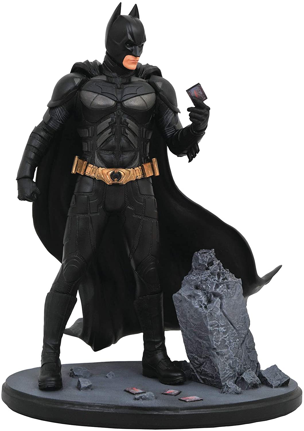 A Diamond Select Toys release! He’s the hero Gotham deserves, and now he’s the latest PVC Diorama in the DC Movie Gallery line! Based on Christopher Nolan’s movie The Dark Knight , this sculpture of Batman shows him examining a playing card amid the rubble of one of the Joker’s escapades. Measuring approximately 9 inches tall, this movie-accurate diorama comes packaged in a full-color window box. Designed by Shawn Knapp, and sculpted by Rocco Tartamella!
