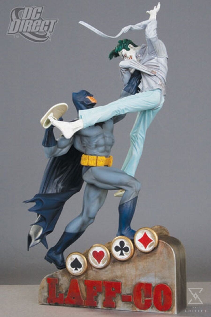 The ultimate battle of good against evil comes to life with the Batman vs.. The Joker laff-co battle statue. The Caped Crusader and the crown Prince of crime square off on the rooftop in this premium Polynesian statue. Limited edition of 5, 000. Measures approximately 13.5-Inches tall.
