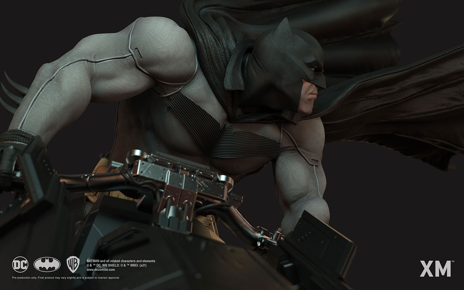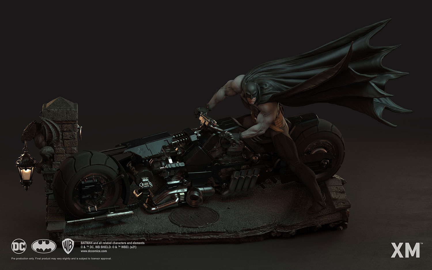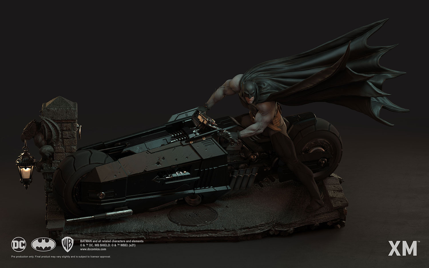 For this Batman showpiece, we engaged Batman: White Knight comics’ original writer and artist, Sean Murphy and worked closely with him to design this gorgeous concept. Without any compromise on the composition of this art piece, this 1:4 scale measuring an estimate of 1m in length, shows Batman on his Batcycle, displayed in its full glory, weaving through Gotham City, long cape swerving in the wind, skid marks on the streets. The light up lamp detail adds to the Gotham ambience, capturing perfectly a scene in time of the Dark Knight’s journey into Gotham’s night.