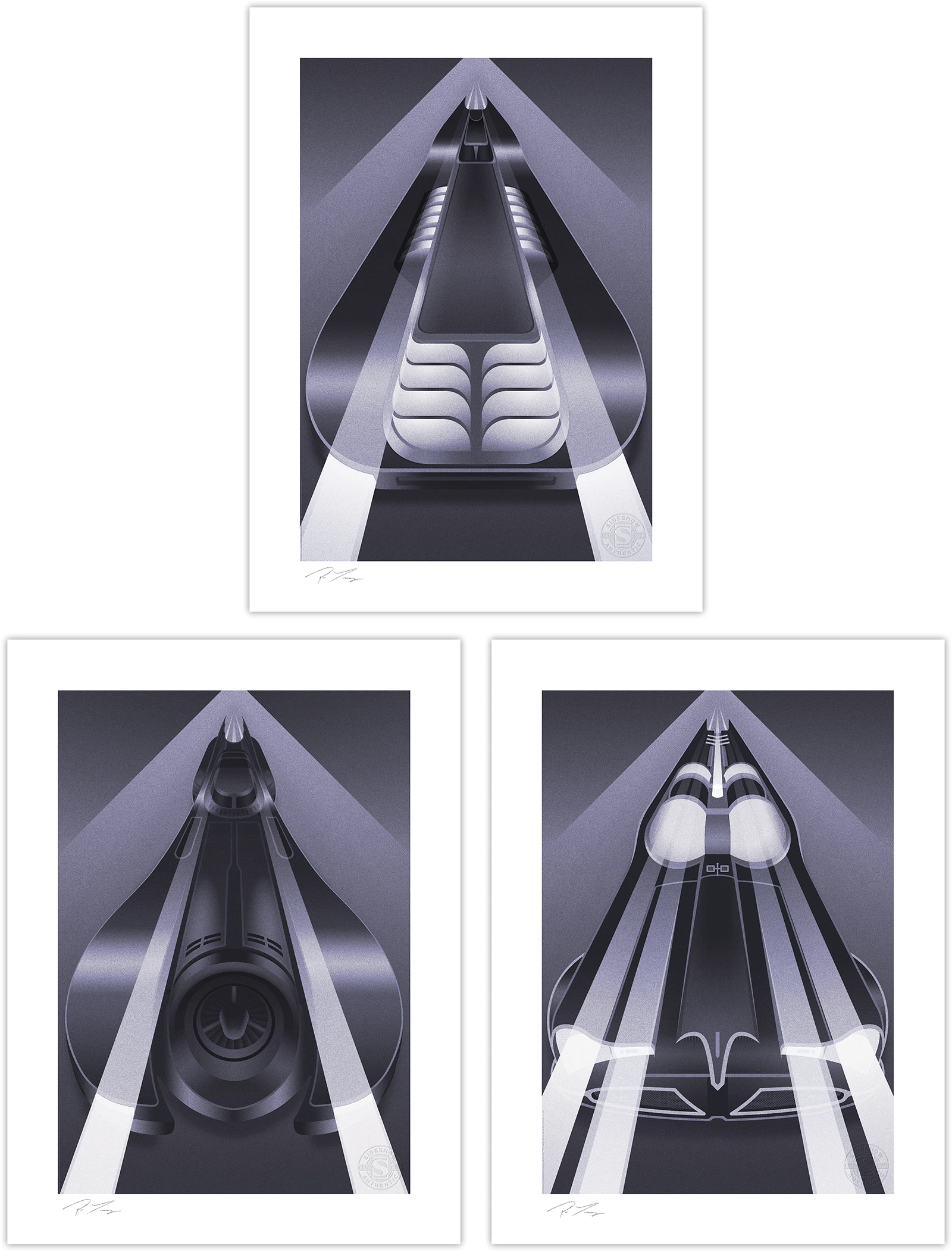Sideshow Art Prints presents the Batmobile Set Fine Art Prints by Fabled Creative.