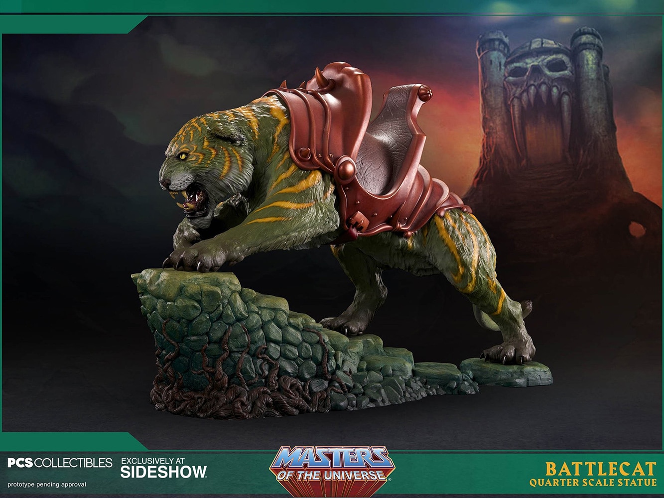 The Battlecat 1:4 Statue is approximately 33″ long and features a helmeted head with LED eyes and unhelmeted head.