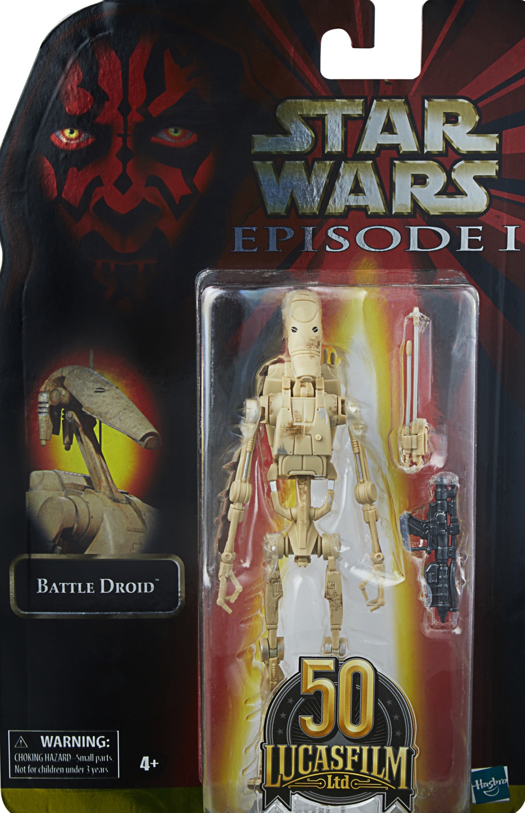 The greedy Trade Federation has created an army that requires no food, no drink, no sleep. Commemorate the first 50 years of Lucasfilm with figures inspired by the Star Wars prequel trilogy, featuring Star Wars: The Phantom Menace-themed packaging.