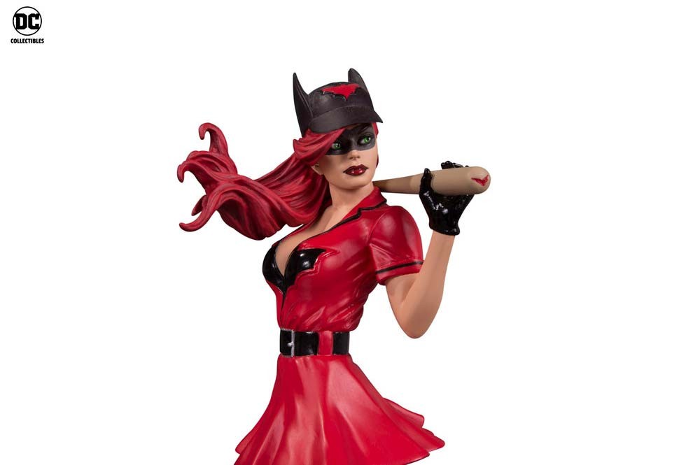 DC Comics is releasing an all new variation on their classic DC Bombshells Batwoman figure. The original was designed by Ant Lucia and sculpted by Tim Miller. The figure is based on the pin-up style posters from the 1940’s and 50’s. The new variation is in a striking red “away uniform” variant paint color. The statue measures the same 9-inch scale as the original version.