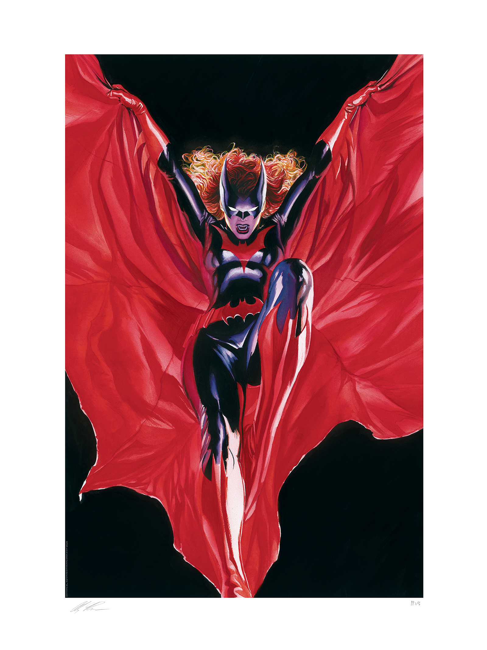 Take wing with Kate Kane and bring home the Batwoman Fine Art Lithograph by Alex Ross today!