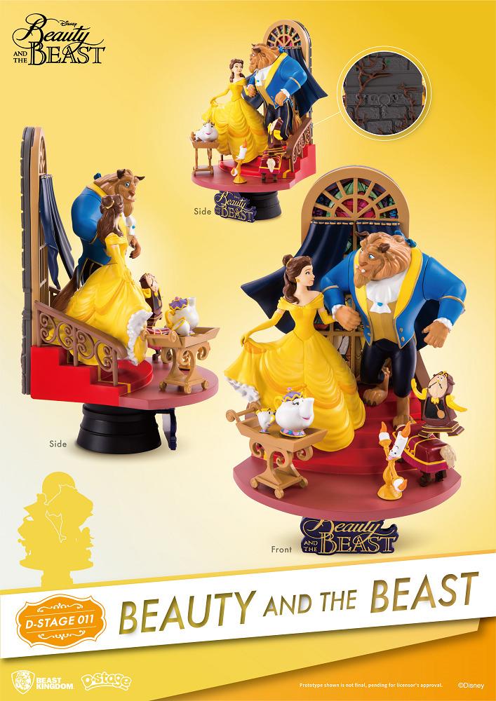 Set in the magnificent splendor of a grand palace and surrounded by a happy and blessed atmosphere, the beautiful Belle holds up the hem of her dress in one hand and with the other, she holds the arm of the Beast. Her head is tilted upwards toward the gallant Beast and they are smiling at each other. The message of Beauty and the Beast is that true beauty is found within, not on the outside. That is the sincere feeling that this classic scene aims to recreate. The meticulously designed setting, the rich colors, and the fine details create a complete this most memorable of love stories.