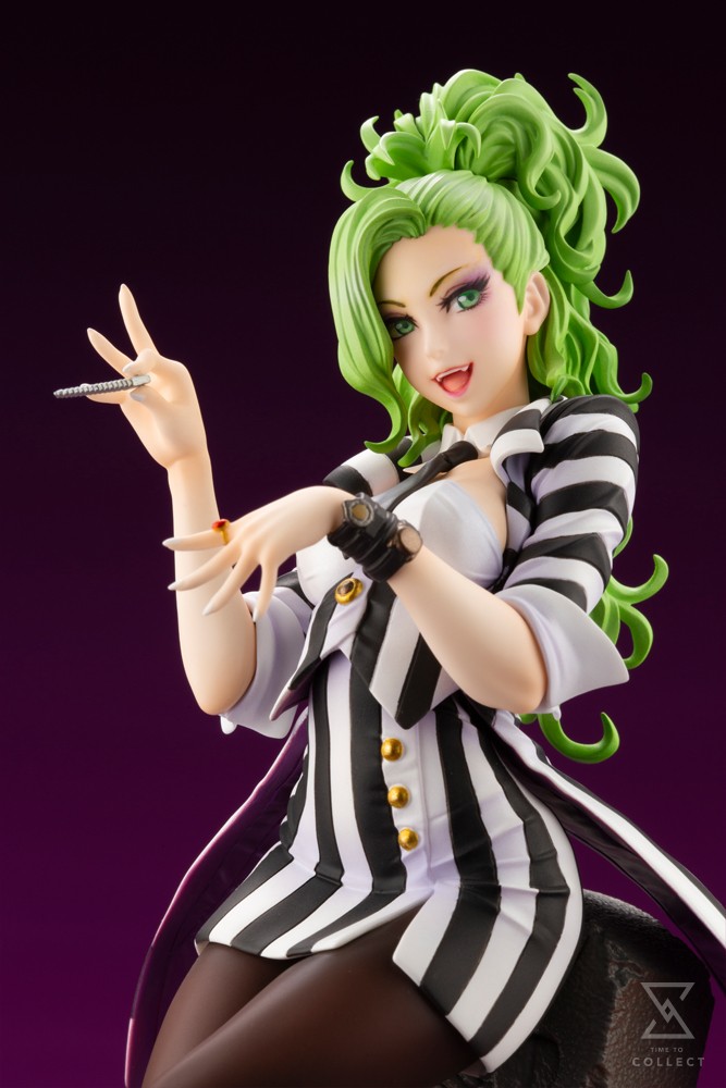 Much to the surprise of many fans, Beetlejuice joins the Kotobukiya Horror Bishoujo series featuring the art of Shunya Yamashita! The strong makeup and half-up ponytail bring out the free spirited personality and energy exuding from Shunya Yamashita’s unique design. Beetlejuice can be seen filing her nails while leaning against the tombstone as could be seen in the film that inspired this statue. The black and white striped jacket is sculpted as a tailcoat, and is finely sculpted down to the tip of the coat. Beetlejuice’s fashionable looks can also be seen from the multiple watches on Beetlejuice’s wrist to the ring decorated with a large stone in the center! Add this cute yet sexy statue to your collection today.