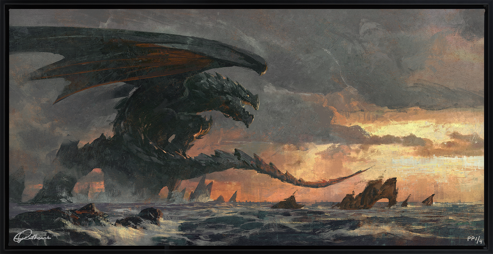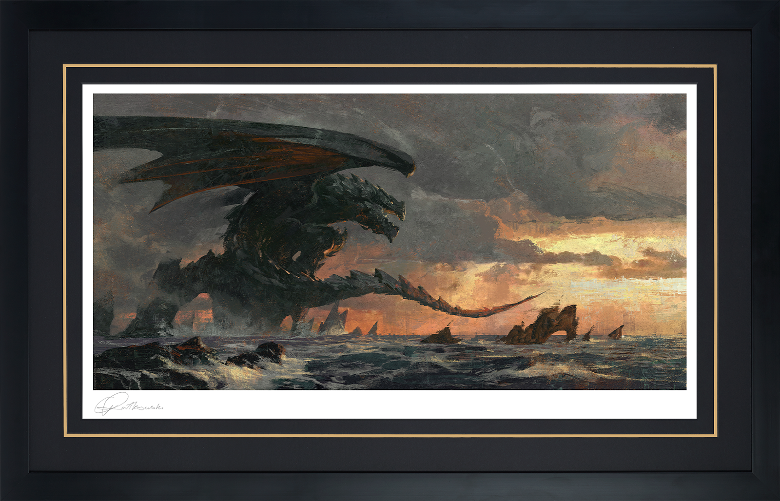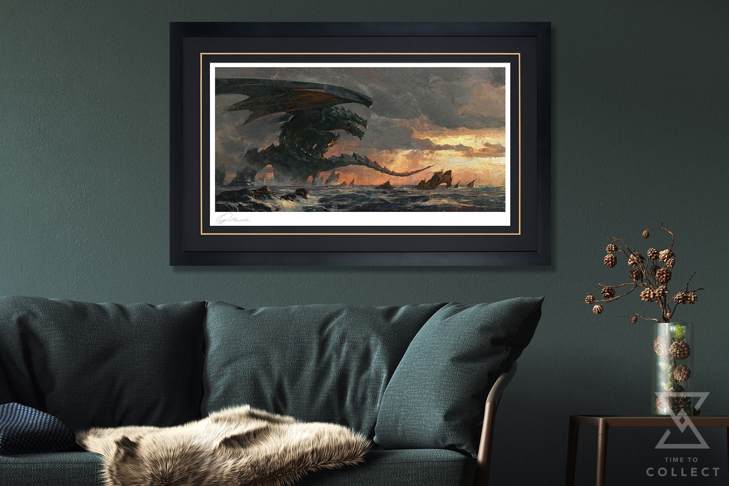 Each Before the Storm Fine Art Print features an authorized, automated artist signature and an embossed Seal of Authenticity as a part of the limited edition of 250 pieces. Available unframed or in a custom framed format, this dragon artwork is a must-have for high fantasy enthusiasts everywhere.