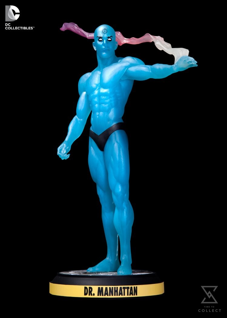 The god-like Dr. Manhattan stands tall in this new statue from the hit Before Watchmen comic book series. Used as a living weapon by the American government, the clairvoyant Dr. Manhattan has control over matter – but what remains of Jon Osterman? This expertly crafted Before Watchmen Dr. Manhattan Statue is one item that fans of the Watchmen series cannot afford to miss out on. Statue measures about 10 1/2-inches tall x 7 1/2-inches wide x 5-inches deep. Ages 14 and up.