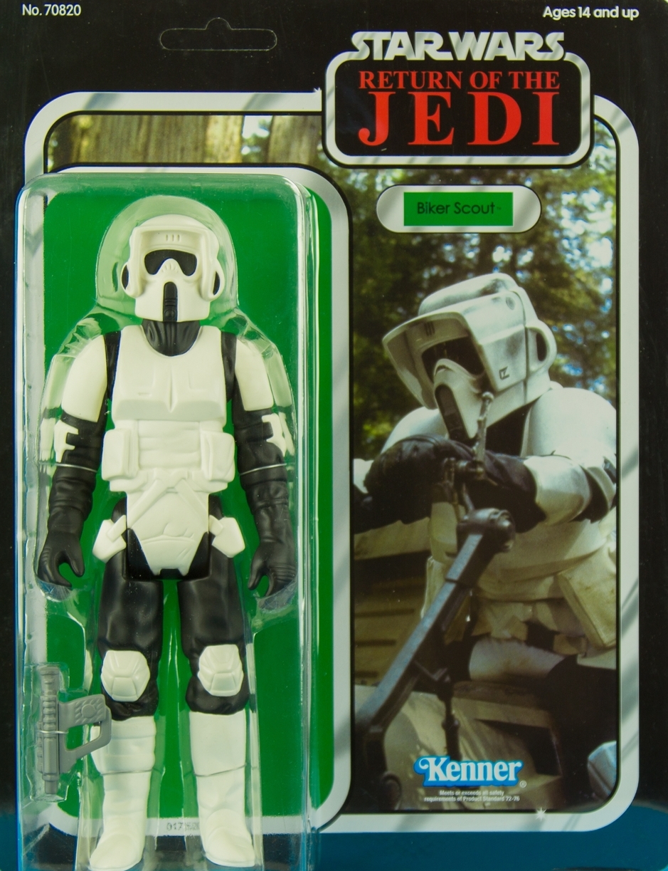 Just like they were when you were a kid, only BIGGER! Gentle Giant is proud to bring you the latest addition to our exciting line of vintage Kenner-inspired Star Wars Action Figure reproductions with the release of the classic Biker Scout Jumbo Figure.
