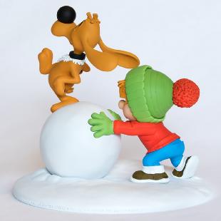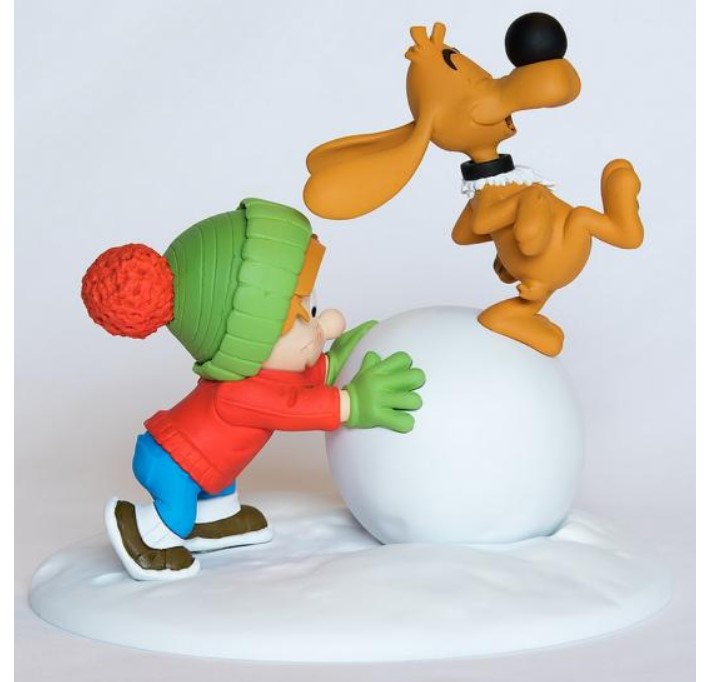 This statue of Billy & Buddy and Pouf inspired by Roba’s work “Billy & Buddy” has been made after a digital sculpture by Quentin Soubrouillard.