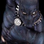 Black Panther’s suit is simple yet highly detailed, showcasing multiple textures that highlight the character’s strong yet flexible form recreated faithfully from the comics. For an added layer of detail, the suit is covered with layers of black, blue, and purple paint, giving the surface a unique color that varies depending on how it catches the light.