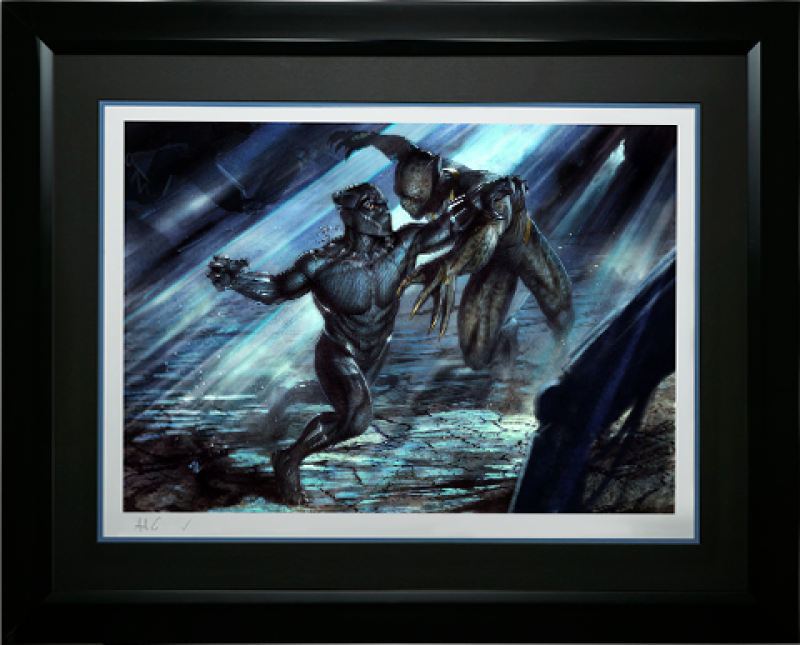 WAKANDA FOREVER! SIDESHOW IS PROUD TO PRESENT THE NEXT ADDITION TO THE MARVEL STUDIOS FINE ART PRINT COLLECTION, THE BLACK PANTHER VS ERIK KILLMONGER FINE ART PRINT BY ADI GRANOV, MARVEL CONCEPT ARTIST AND COMICS COVER ARTIST.
