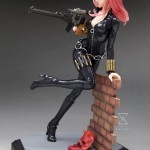 The beautiful but mysterious Black Widow has never looked better as she lures an unseen foe into her trap, preparing to vault over a low wall. The sexy Avenger wears her traditional skin-tight bodysuit that leaves little to the imagination, and of course it’s accented by her unique belt, wristbands that fire the “Widow’s Bite,” extra ammunition strapped to her thigh, and built in high-heeled boots! Her entirely new sculpt brings an unprecedented feeling of action and movement (highlighted by her swirling hair), and of course Black Widow’s adorable Bishoujo-inspired face will stop you in your tracks. Interchangeable parts even let you display Natasha with or without her fearsome rifle!