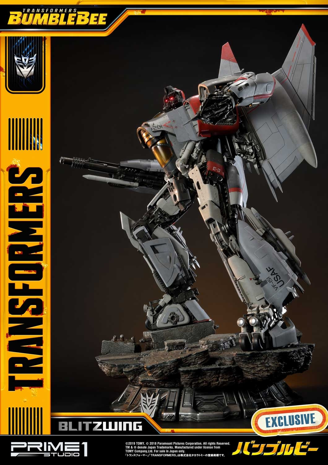 Prime 1 Studio is proud to present MMTFM-25EX: Blitzwing from the latest series of the Transformers series: Bumblebee (Film). When the first trailer for the Bumblebee movie was released, many fans assumed that this Decepticon, who inherits many designs and transformation elements lifted from the original Generation 1 Seeker, was called Starscream. However, the classic red and greyish color body type was, in fact, Blitzwing! Not only was he a member of Decepticons who followed Bumblebee to Earth for Optimus Prime’s location but also took the form of an Air Force jet on Earth. The Seeker is a triple changer who holds a grudge against Bumblebee. Blitzwing is carefully sculpted with LED light-up feature on the head. It is coming with several interchangeable parts in which the Exclusive version comes with a switchable left hand that stabs and damaged Bumblebee’s vocal processor. The perfect statue to recreate the Fighting scene of Bumblebee and Blitzwing. Don’t miss your chance to add this Decepticon to your collection!