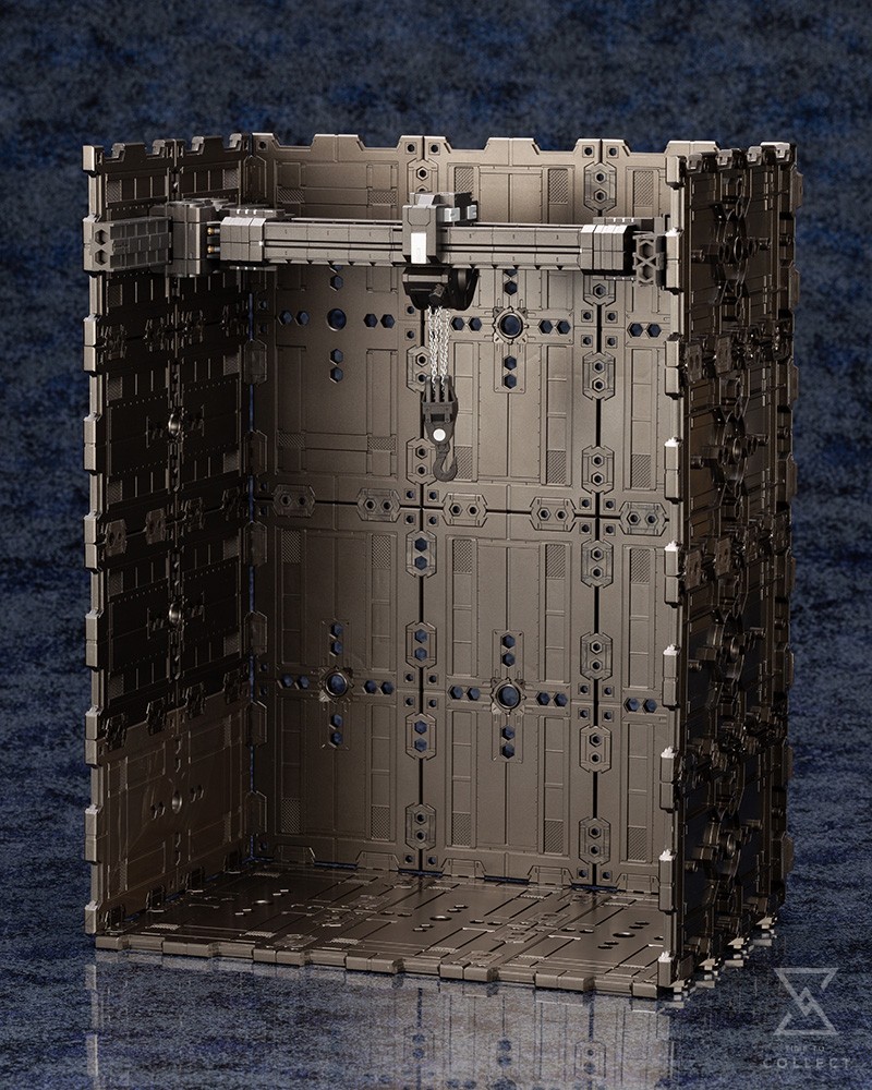 Kotobukiya is proud to present a brand new Block Base that will transform the construction scenes of Hexa Gear. In addition to panel units, this set contains a newly sculpted “Crane Unit”, “Girder Unit”, and “Running Rail Unit”. Combined with the included 75mm×150mm wall and floor base plates, users can create a base or factory with a crane using this kit alone.