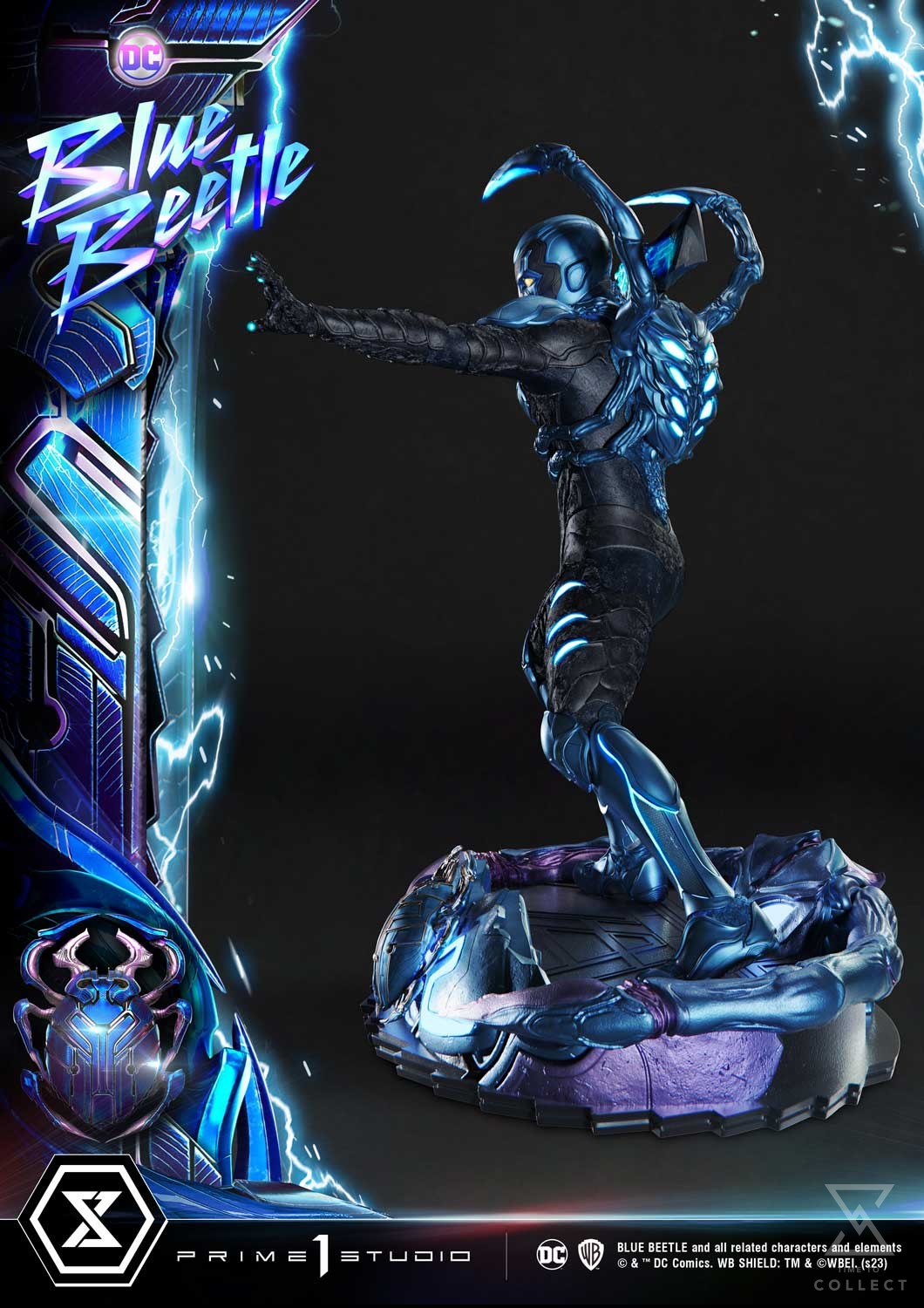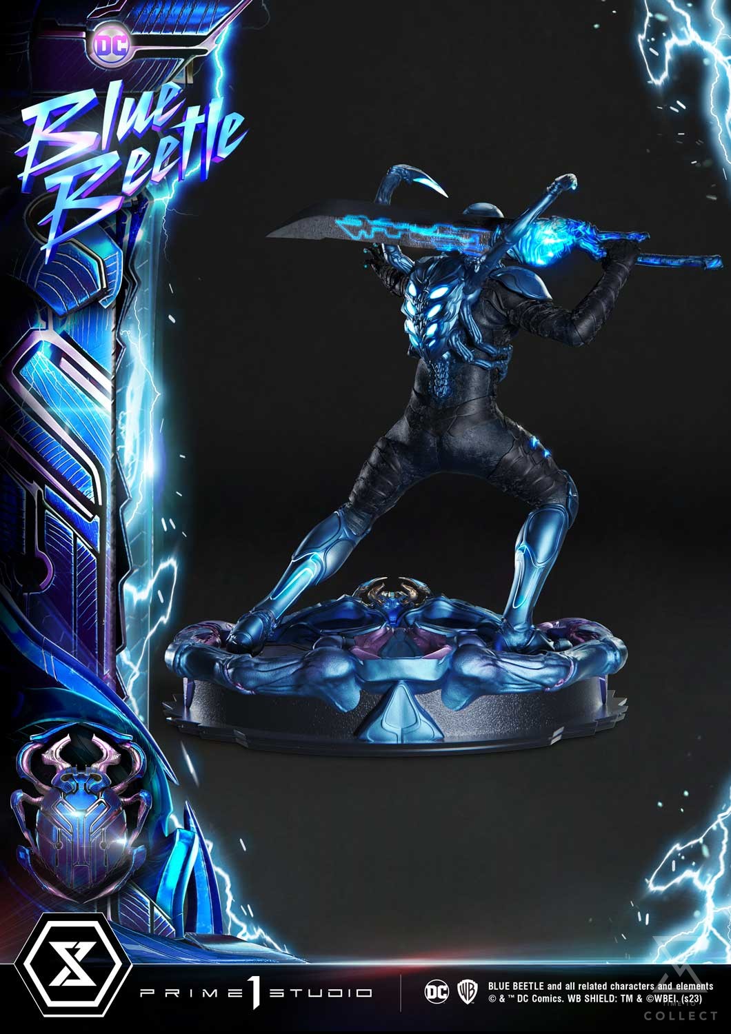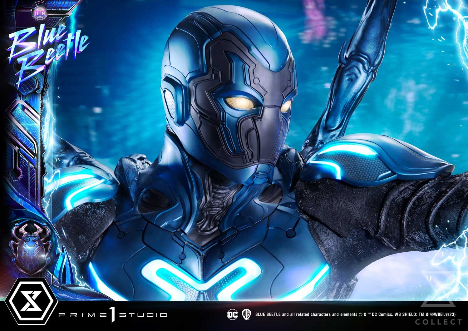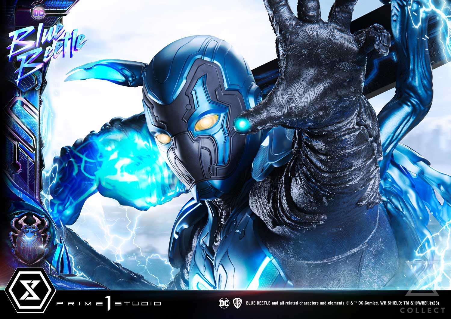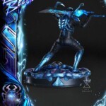 Prime 1 Studio is very proud to present DC Comics’ latest superhero film installment, joining the Museum Masterline series, here is the 1/3 scale MMBLB-01 Blue Beetle of the DC Extended Universe movie! Jaime Reyes was chosen by an alien biotechnological relic, called the Scarab. Once fused with his spine, the ancient relic gave him a powerful exoskeleton armor equipped with advanced technology, allowing him to become the superhero Blue Beetle as he fights crime and takes on supervillains. At an impressive 26 inches tall, Blue Beetle strikes a fighting stance, his Buster Sword resting on his right shoulder as his left hand is outstretched forward. As always, our artists have done an outstanding job at texturizing the futuristic exo-suit and shading the distinct metallic blue. A closer look shows that the sword is carved with vein-like alien engravings. The statue features vibrant blue energy that courses through the chest emblem, the same shape that is etched onto the body of the Scarab itself, an homage to its power source. The same blue energy shines through the shoulders and thighs – reflecting the integration of alien technology, as the eyes shine a bright amber yellow, all of which are illuminated with LED. The superhero stands atop an extraterrestrial-inspired base, which is also illuminated with LED as the blue energized emblem glows brightly behind the mini-Scarab replica placed in the middle. This extraterrestrial-themed piece is sure to keep you visually entertained. Whether you are a DC fan or a Blue Beetle fan, do not miss out on this stunning addition to the DCEU’s epic summer blockbuster, and preorder the MMBLB-01 Blue Beetle now! Who knows, maybe the Scarab will choose you next!