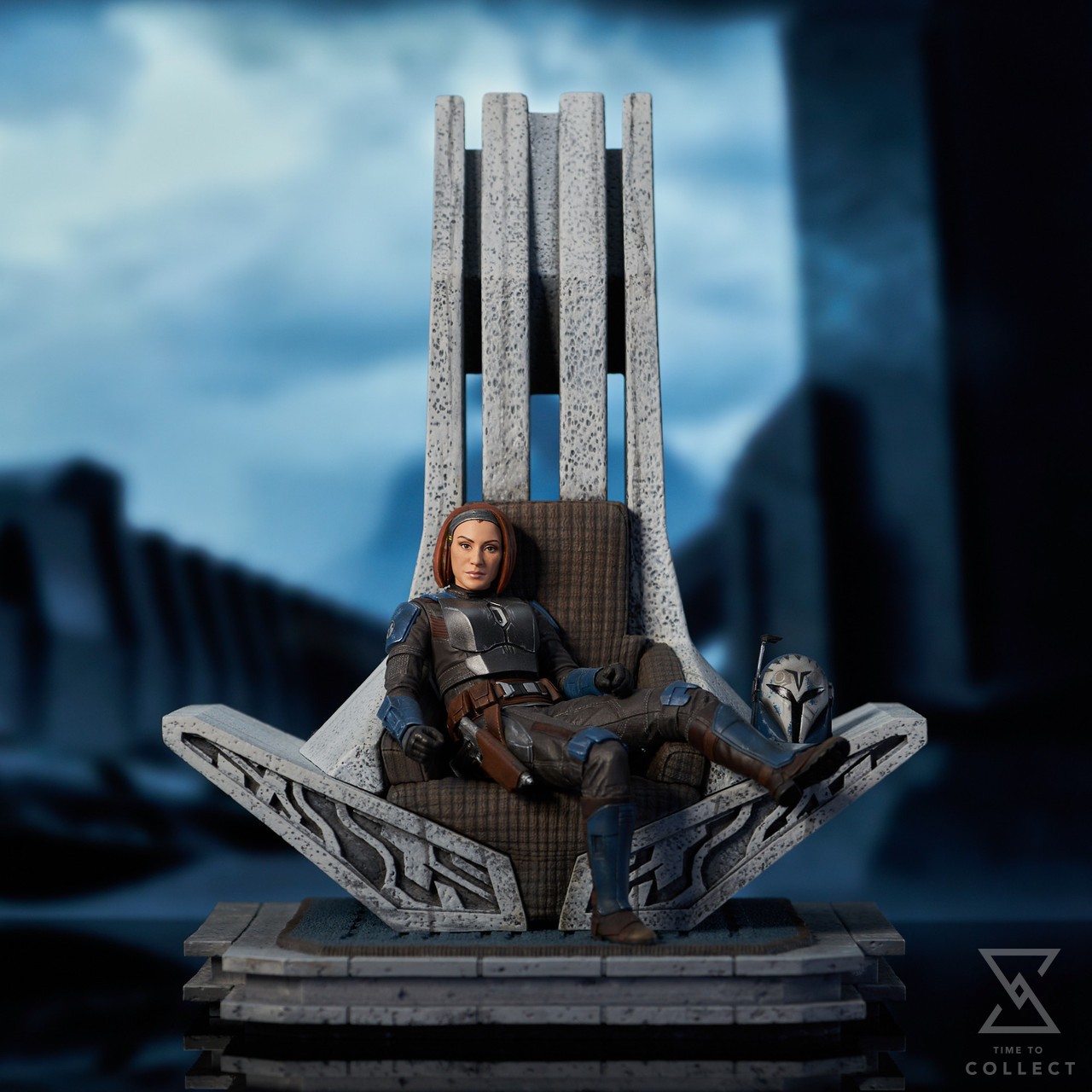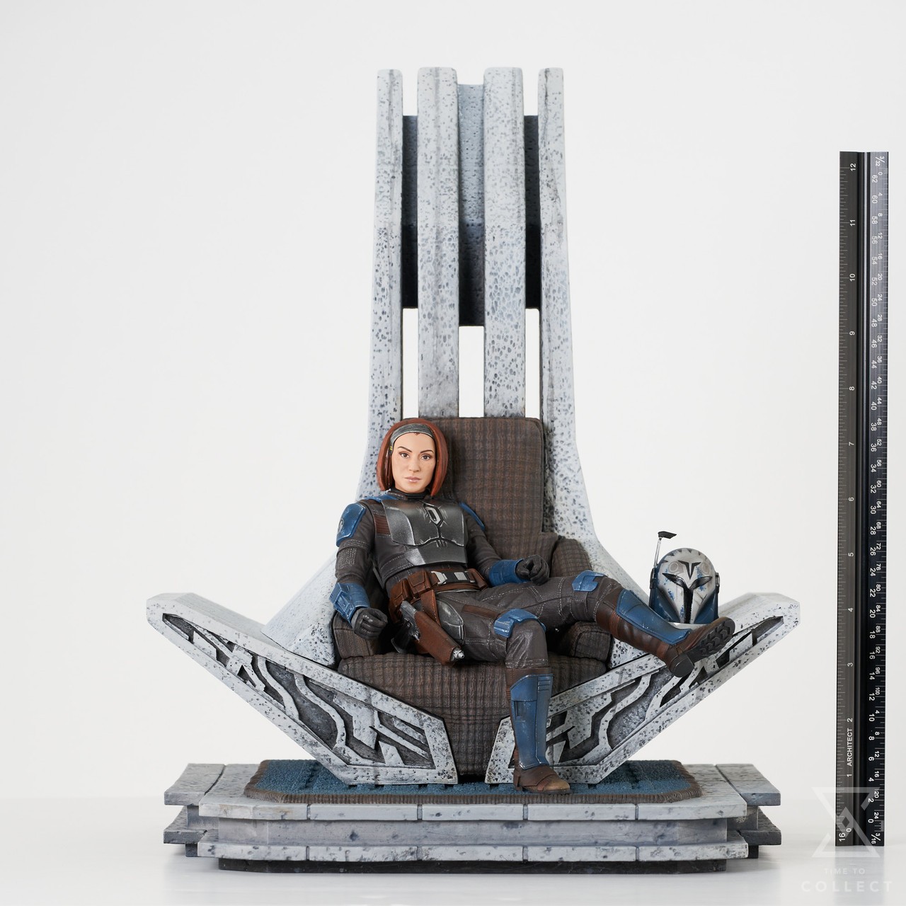 A Gentle Giant Ltd. release! For Mandalore! The wielder of the Darksaber and the heir to the Mandalorian crown sits at ease on her throne in this new 1/7 scale statue! Measuring approximately 14 inches tall, this statue captures a scene straight out of The Mandalorian Season 3 and features detailed sculpting and paint applications. Limited to only 1000 pieces, it comes packaged with a numbered certificate of authenticity in a numbered full-color box.