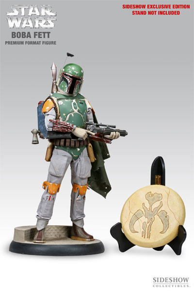 The Premium Format 1:4 Scale Boba Fett figure captures the mysterious bounty hunter as he appeared in Return of the Jedi. Boba Fett stands 19 inches tall atop an environmental display base reminiscent of Jabba’s palace. Every detail of Fett’s Mandalorian armor has been reproduced in true 1:4 scale, as well as his jetpack and braided wookiee pelt trophies. Boba Fett’s helmet features ball-joint articulation, so that you can turn his calculating gaze in whichever direction you desire. The Premium Format Boba Fett figure is the ultimate Fett collectible – don’t miss this chance to get yours!