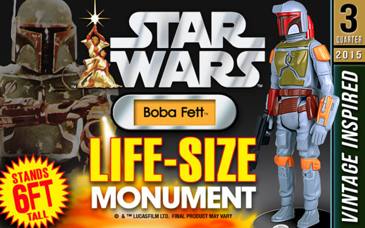 A Gentle Giant Release! Gentle Giant is proud to bring you the latest addition to their line of popular life-size monuments with the Kenner-inspired Boba Fett Life-Size Vintage Monument! Digitally scanned from an authentic mint-condition 3 3/4″ action figure and reproduced to a staggering six-foot scale, this fully articulated monument also includes an authentic re-scaled replica blaster accessory! A stunning centerpiece for any true collector’s display, this limited edition hand-painted monument comes with a Certificate of Authenticity.