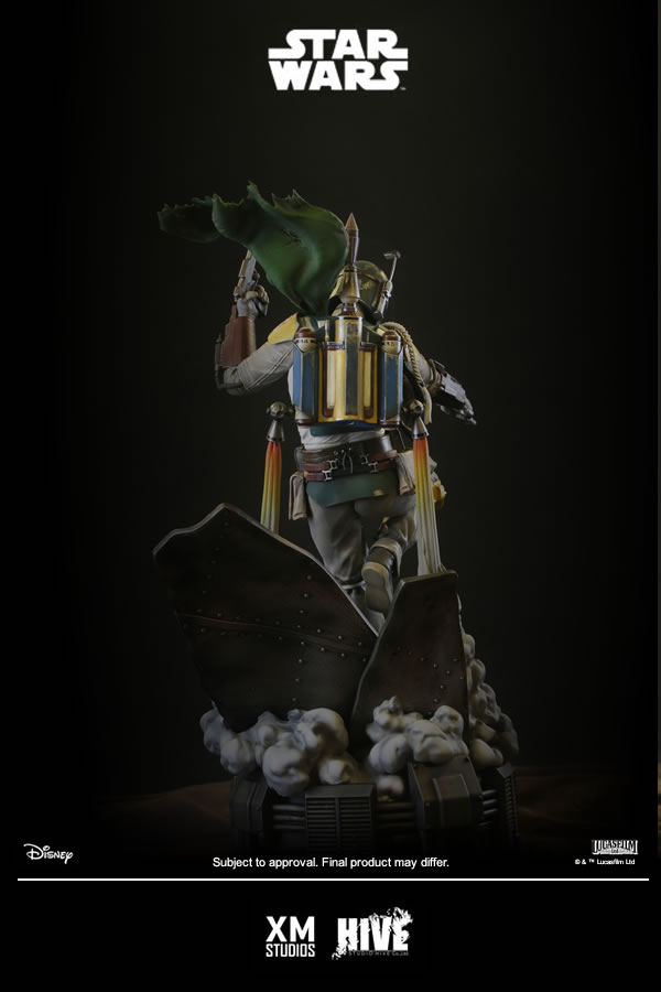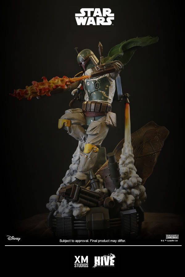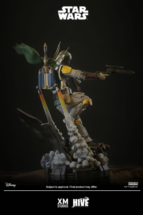 XM Studios is proud to present our first Star Wars Premium Collectible Statue, Boba Fett! With a reputation as the galaxy’s deadliest bounty hunter, Boba Fett is brought to life in an incredibly detailed 1:4 scale cold-cast porcelain format. Each painstakingly handcrafted statue stands at approximately 64.5 cm tall and every piece individually hand-painted with the highest possible finish. Featuring a dynamic action pose utilizing his jetpack to engage his targets, the innovative display options also include access to his deadly arsenal of weapons; Pistol Blaster, Carbine rifle and Flame Thrower!