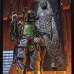 The greatest mercenary in the galaxy has finally captured Captain Solo! Clad in his classic weathered green armor and wielding a carbine rifle, the bounty hunter Boba Fett guards his latest trophy. Han Solo™ is frozen in carbonite™ and framed as a decoration — and a very effective warning for all those who would cross the Hutt™ crime lords. It would take a thermal detonator and a sarlacc™ to get past this security detail!