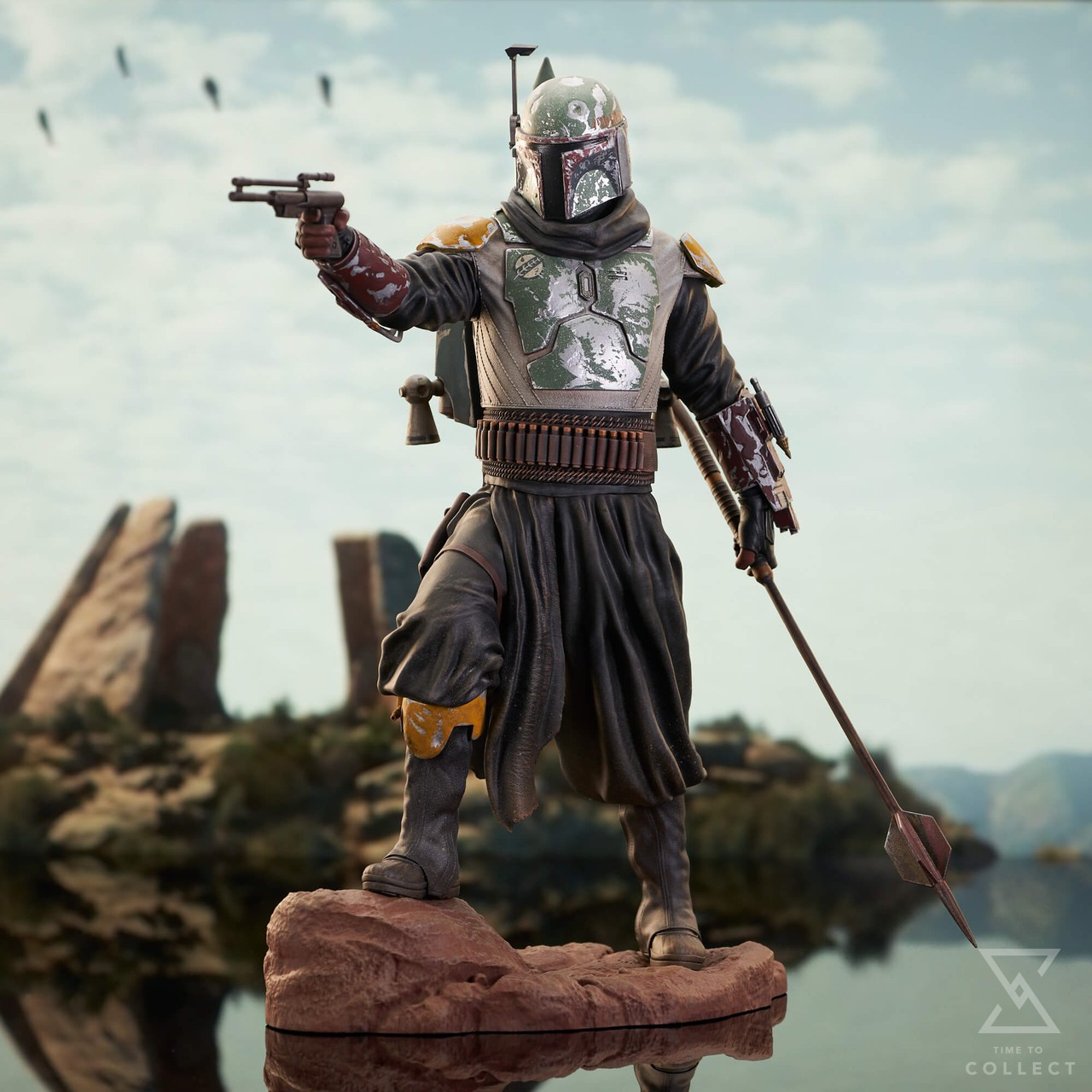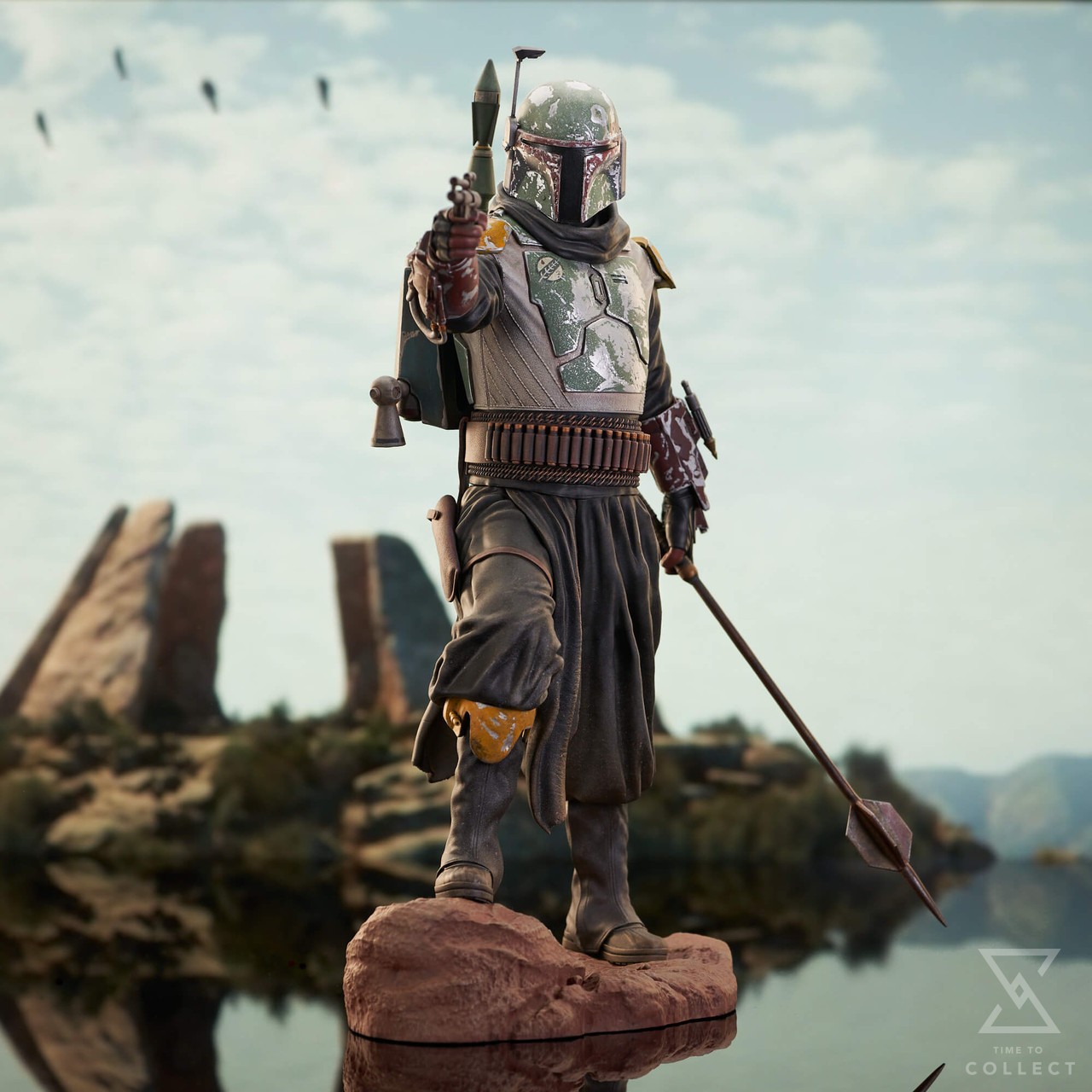 A Gentle Giant LTD release! He’s back! Boba Fett made his triumphant return to Tatooine in The Book of Boba Fett, and now he’s returning to the Milestones statue line in style! Wearing his new black outfit, gaderffii stick in hand, leveling a blaster, Boba Fett stands approximately 12 inches tall and features detailed sculpting and paint applications. Limited to only 2000 pieces, he comes packaged with a certificate of authenticity in a full-color box.