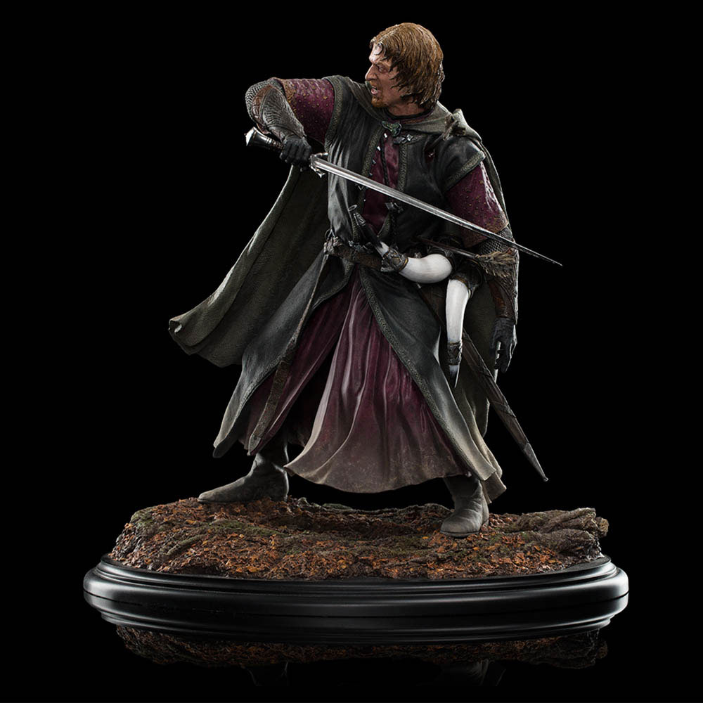 Called to Rivendell by a dream, Boromir joins the Fellowship of the Ring as a representative of Gondor. With Mordor pressing in upon his people’s borders, Boromir seeks to persuade the Ringbearer to come to Minas Tirith where the weapon of the enemy might be used against Sauron. Yet the great warrior’s pleas fall upon deaf ears, for Gandalf speaks against this course and the hobbit Frodo, bearer of the One Ring, trusts the Wizard’s judgement.