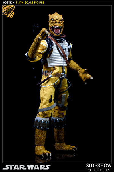 Sideshow Collectibles is proud to announce the newest addition to the Star Wars Scum and Villainy Sixth Scale figure line, the ruthless Trandoshan Bounty Hunter, Bossk.
