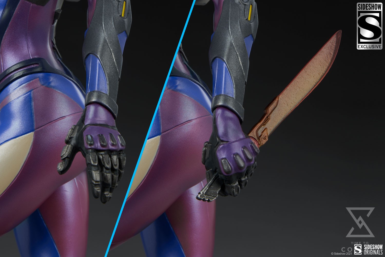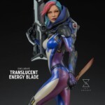 If you really want to see how the Bounty Hunter brings in her quickest kills, you’d best keep your eyestalks on the energy knife in her left hand that she calls her little Crater Maker- because of the deep holes it leaves in her targets. Not a deadlier weapon in all of Orion’s belt, cross my three hearts! This additional display option is only available with the Exclusive Edition of the Bounty Hunter Statue.