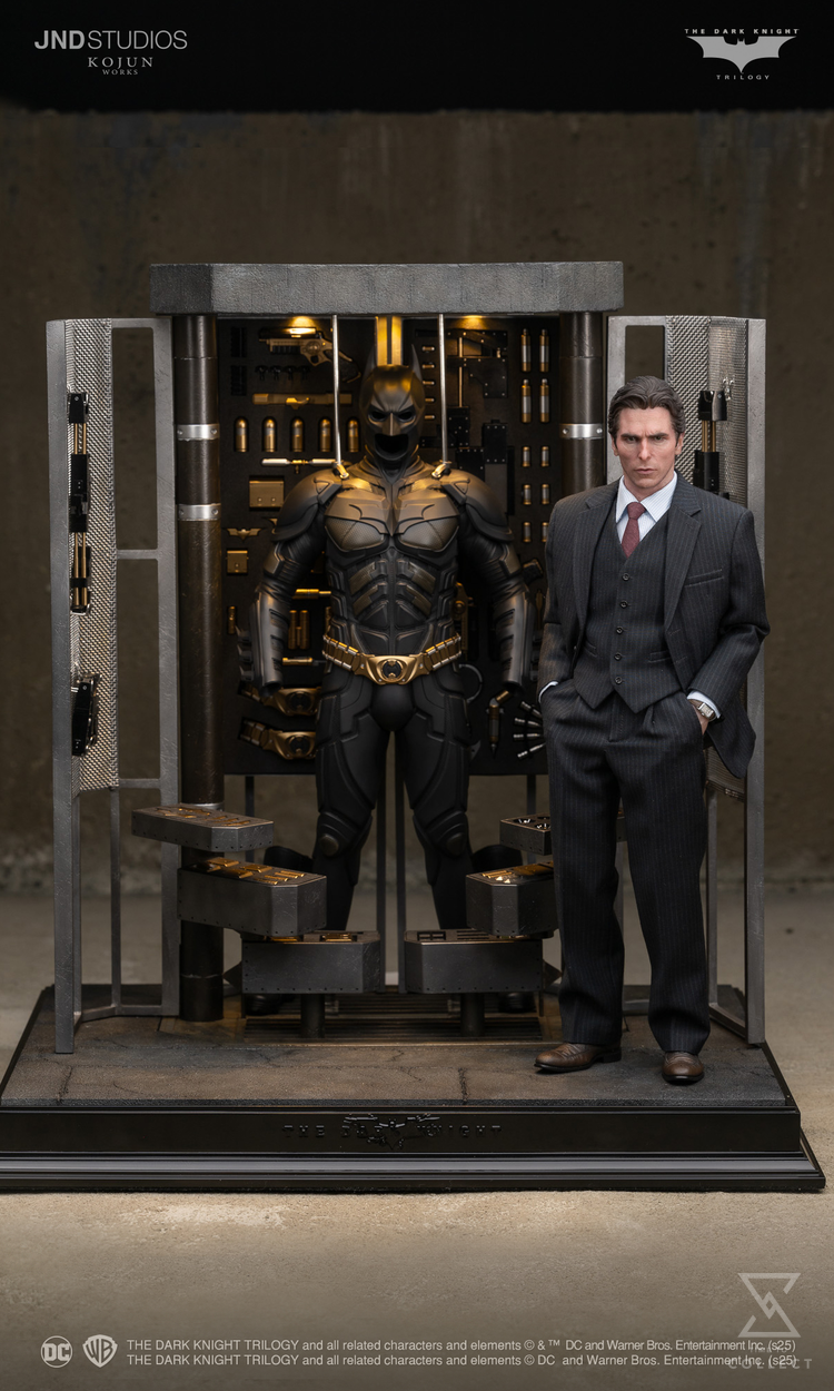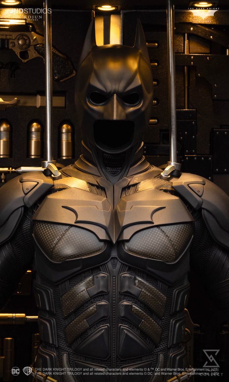 JND Studios KOJUN WORKS Bruce Wayne meticulously recreates not only Bruce Wayne but also Batman and the Bat-Armory in perfect detail to fully convey the theme of the original Dark Knight movie. KOJUN WORKS’ Bat-Armory goes beyond being a mere accessory or diorama, serving as a collectible that faithfully captures the essence of the original film. Collectors will appreciate the harmony between the base and the armory, the intricate design, and the incredible quality of Batman’s weapons, allowing them to fully experience the atmosphere of the original movie. Additionally, a perfectly crafted Batman statue in the same scale is included, which can be displayed in an unmasked form through a head swap. To accommodate collectors’ display preferences, both a single base and a dual base are provided, which are fully compatible with the previously released JND Studios KOJUN WORKS Joker. Experience the ultimate collectible from the Dark Knight Trilogy with JND Studios KOJUN WORKS Bruce Wayne.