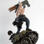 Standing at 21’ (53 cm) high, Bryan Fury is featured on a battlefield perched fiercely over the remains of a tank in his original outfit holding his iconic heavy weapons and ready for a fight. He is portrayed with his infamous expression, smirking as he takes delight in watching others suffer.