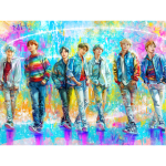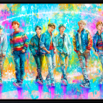 Inspired by the vibrant visuals in the “DNA” music video, a song from the album LOVE YOURSELF 承 ‘HER’, the BTS: DNA Fine Art Print celebrates the breathtaking elation that comes from finding your soulmate. The print’s background is drenched in bursts of bright colors which seep into the radiant dancing forms of RM, Jin, SUGA, j-hope, Jimin, V, and Jung Kook. All around the seven members, the chemical formula NH2 can be seen spinning in a deep purple. Finally, a shimmering white line highlights the dynamic movement and themes of destiny present in this piece.