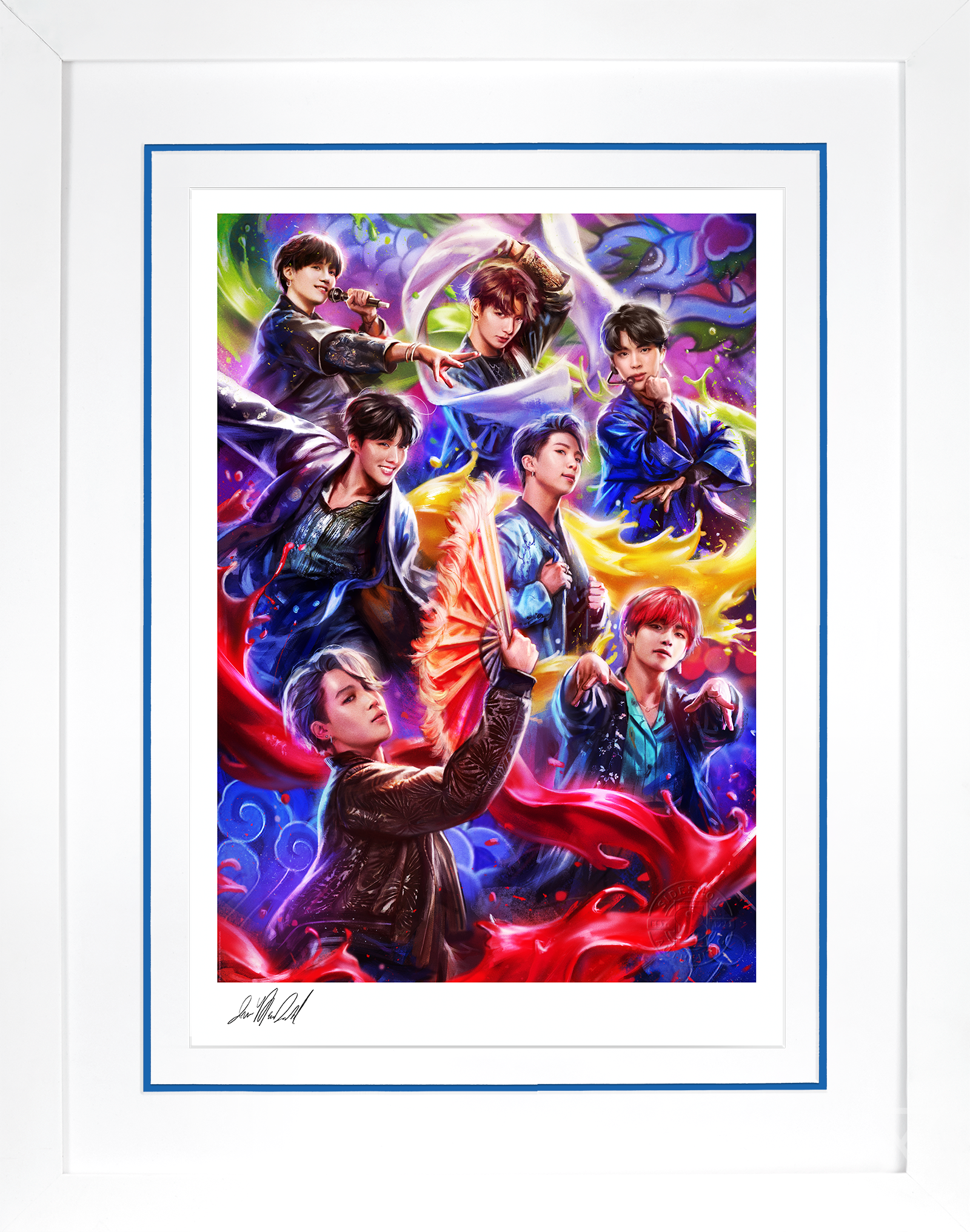 Each BTS: IDOL Fine Art Print by Ian MacDonald features an authorized, automated digital artist signature and is embossed with the Sideshow Seal of Authenticity as a part of the limited-edition collaboration BTS product release. The fine art giclee is available as a museum quality unframed collectible or as a custom-framed, fully archival quality piece ready for display in your home.