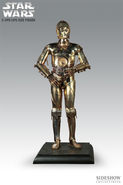 Sideshow Collectibles’ C-3PO is the most authentic life-size reproduction ever available to private collectors. Crafted of fiberglass and various quality materials, these sought-after droids are sure to be the centerpieces of any Star Wars collection, perfect for your home, office, or theater room. The figure will include light and sound function, for the most ‘real’ experience possible. The light and sound will be powered by the included power cord and U.S. plug, with International (EU) adapter also included. There is no battery option. The figure will include a display base, perfect for keeping your favorite droid in a comfortable standing position.