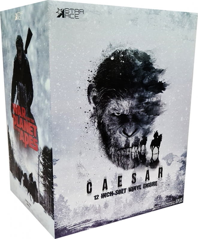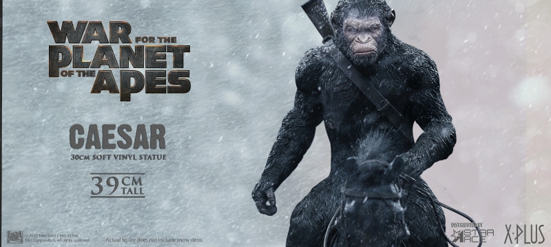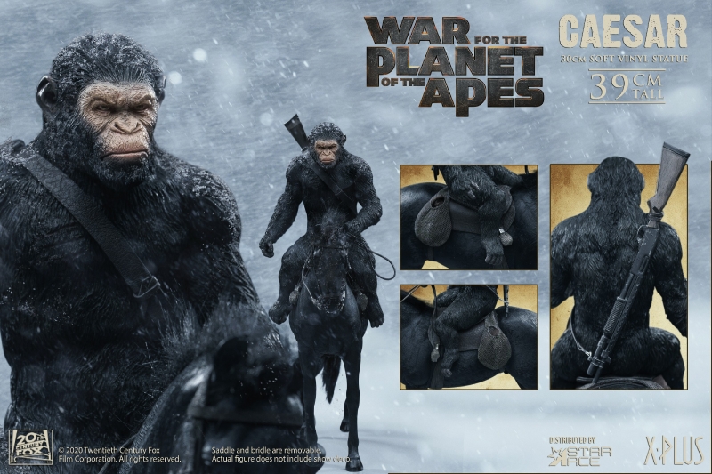 This statue of polyresin and soft vinyl is approximately 39 cm tall to the top of Caesar’s head while mounted on the horse. It features a detailed, authentic likeness to Caesar in the films and is meticulously hand painted. - Material: Soft Vinyl + Polyresin (Mixed Media) Statue, (non scale) 39cm tall