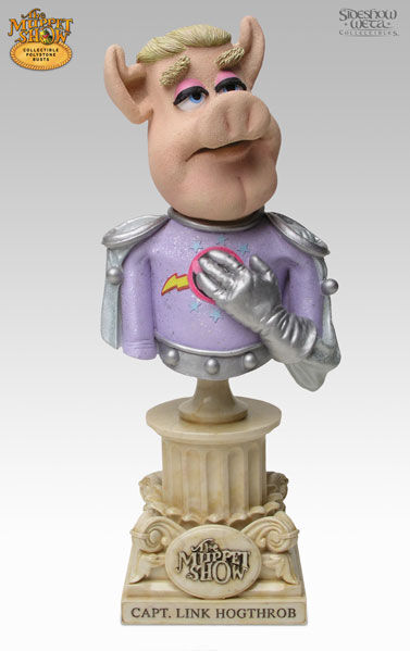 Link Hogthrob is the blonde, cleft-chinned pig with a high opinion of himself on The Muppet Show. He debuted in the second season as the not-so-fearless captain of the Swinetrek, where his unbridled machismo was often a source of conflict with his co-star, First Mate Piggy.